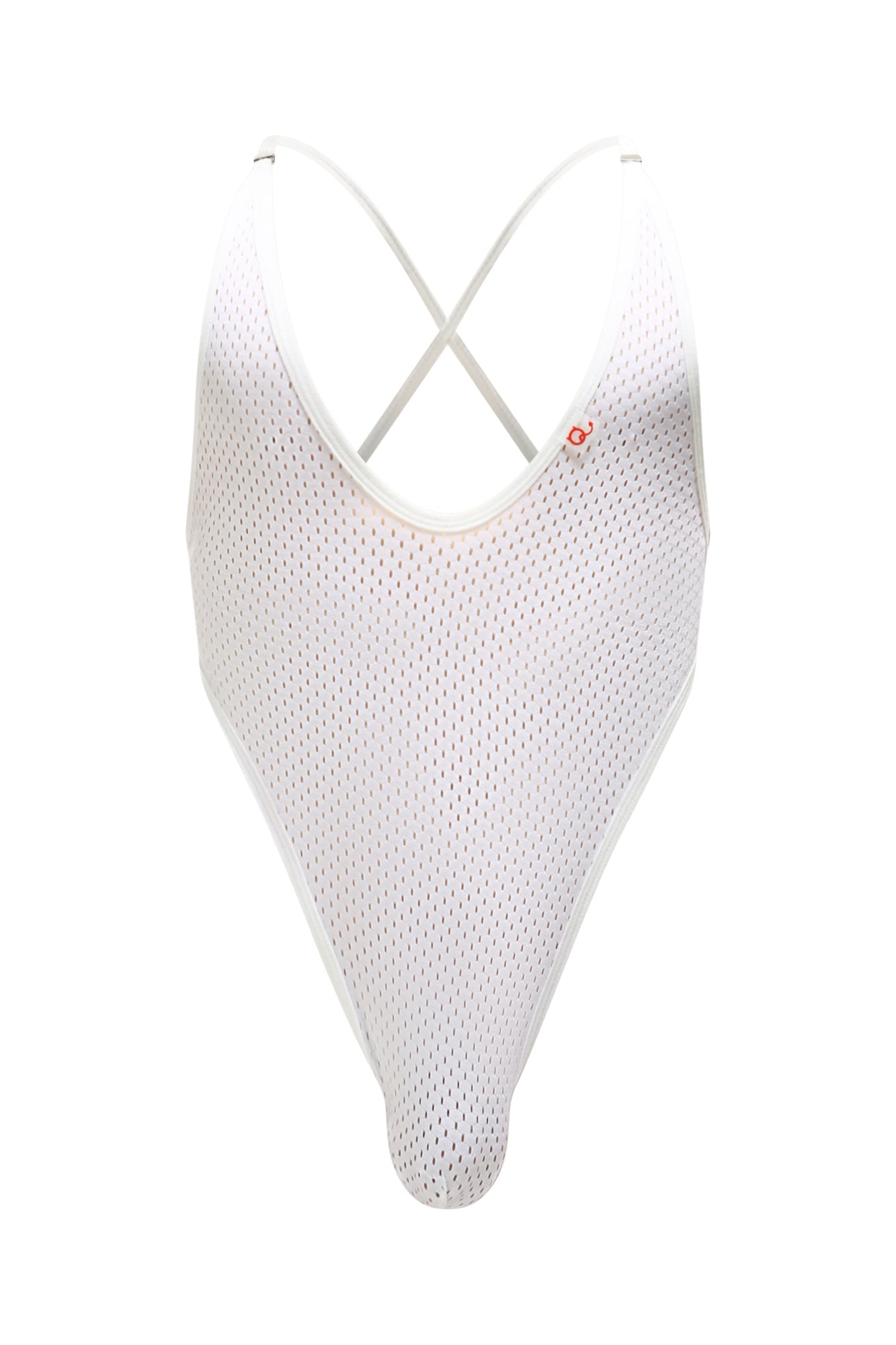 The Bodythong Tarare Bee White is a white breathable men’s bodysuit made from ultra-light mesh fabric. It features a deep neckline and an open back made of thin elastics you can wear as a thong or a jockstrap, depending on your mood and outfit.
