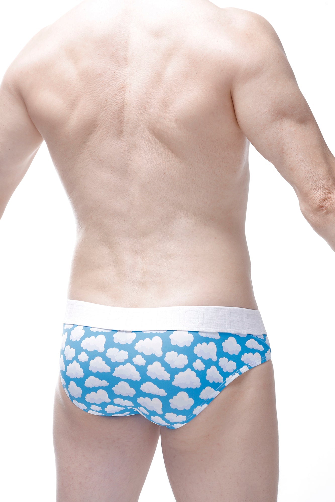 Die Chill-Kollektion umfasst alle Unterhosen mit einem nahtlosen Beutel, damit Ihr Paket natürlich hängt. Dieser Slip hat einen süßen Aufdruck mit blauem Himmel und süßen Wolken für einen ruhigen Tag.