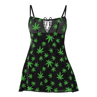 Dieses bezaubernde Modell aus der Exposed by Magic Silk Kollektion umfasst ein fließendes Kleid aus schwarzem Netzstoff mit einem schwarzlichtreaktiven grünen Hanfblatt-Design. Das Kleid verfügt über verstellbare Träger mit goldfarbenen Schiebern, linken Kanten und Kordelzug vorne. Der passende String-Tanga komplettiert dieses auffällige Ensemble. Erhältlich in zwei leuchtenden Prints: neongrüne Hanfblätter und regenbogenfarbene Zauberpilze auf schwarzem Stretch-Netzstoff, beide schwarzlichtreaktiv. Verleihen Sie Ihrer Kollektion mit diesem verführerischen Dessous-Set für Damen einen Hauch von Kühnheit. Sichern Sie sich diesen einzigartigen String-Tanga mit Kleid und überzeugen Sie sich selbst und mit Stil.