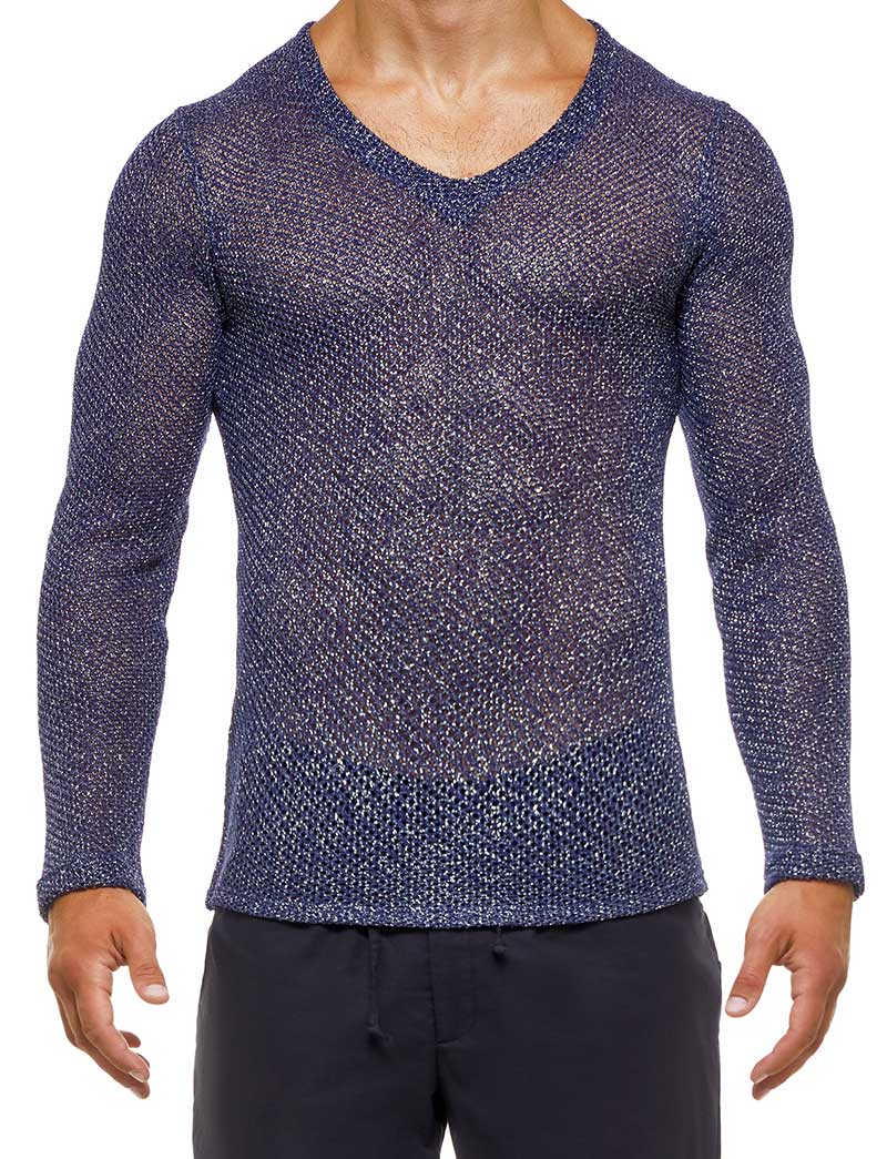 Steigern Sie Ihren Stil mit dem langärmligen T-Shirt „Knight“ von Modus Vivendi mit V-Ausschnitt in auffälligem Blau. Dieses klassische, eng anliegende Hemd ist perfekt für alle, die gerne ein mutiges Modestatement abgeben. Der innovative gestrickte Baumwollmischstoff mit glänzenden Lurexgarnen bietet eine halbelastische Passform, die Komfort und Stil gewährleistet.