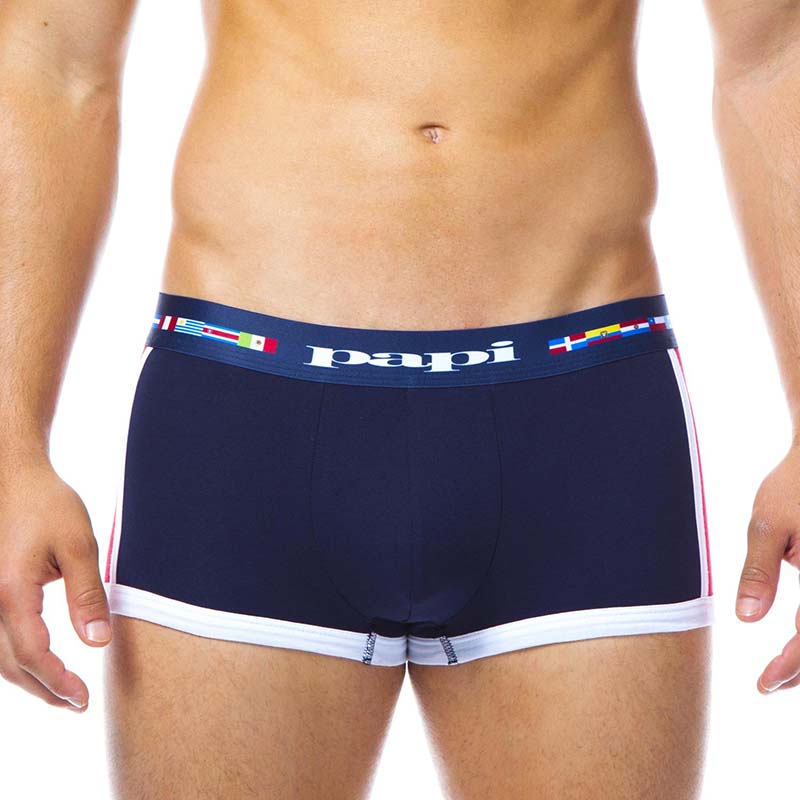Erleben Sie die perfekte Mischung aus Komfort und Stil mit der Papi Viva Heritage Brazilian Trunk Unterwäsche in Marine. Diese für den modernen, aktiven Mann entworfenen Shorts sitzen knapp unterhalb der natürlichen Taille und bieten eine mittelhohe Passform, die sowohl Komfort als auch einen eleganten Look gewährleistet.