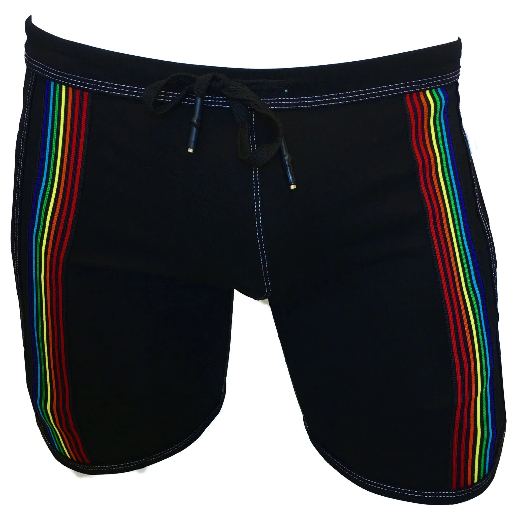 Der weiche, dehnbare Baumwollstoff im Regenbogenstreifen-Design verleiht diesen Shorts einen sportlichen Retro-Look der 80er/90er Jahre!