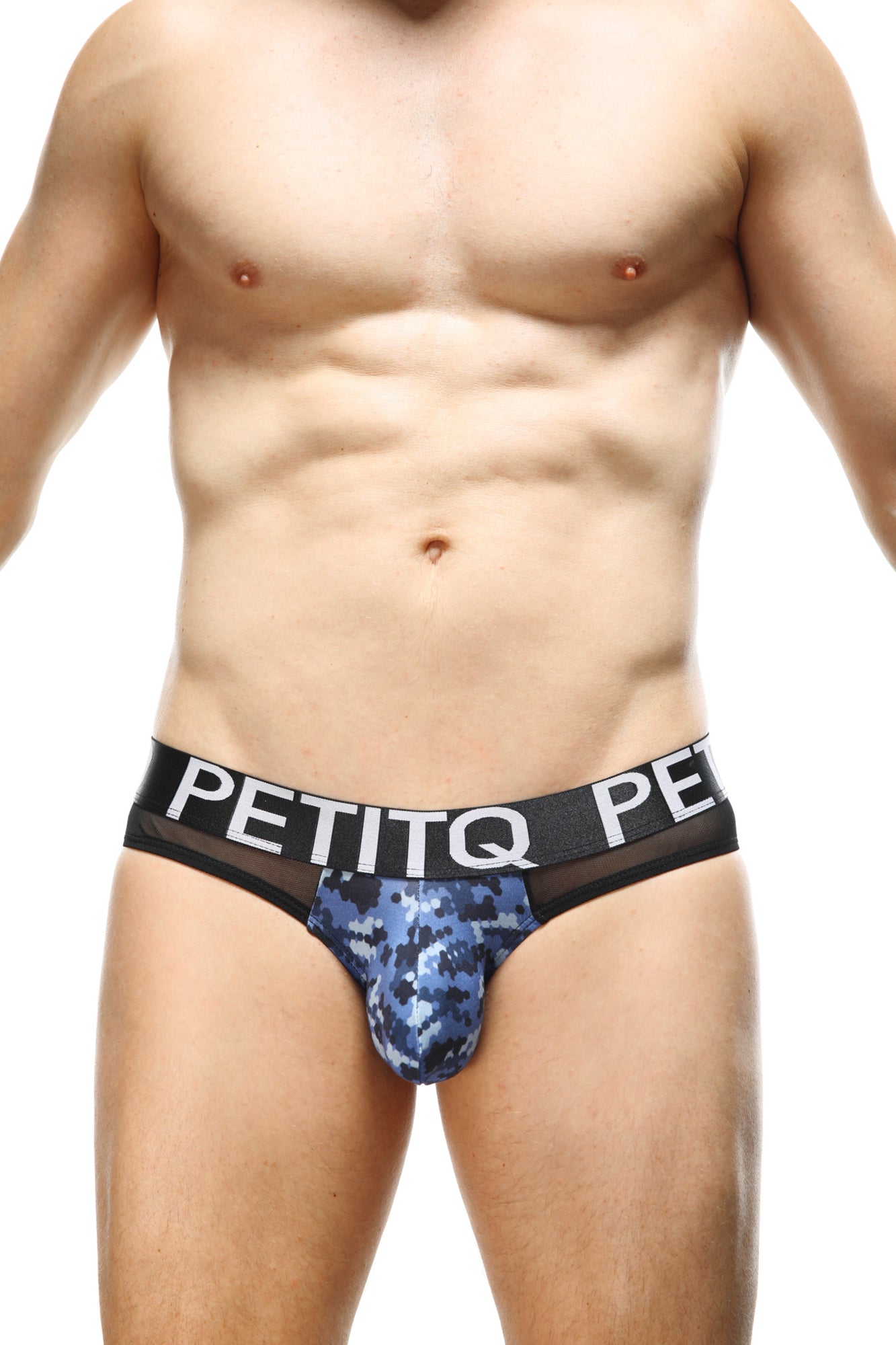 Slip noir sexy transparent avec forme string dans le dos. Joli contraste avec le modal camouflage bleu
