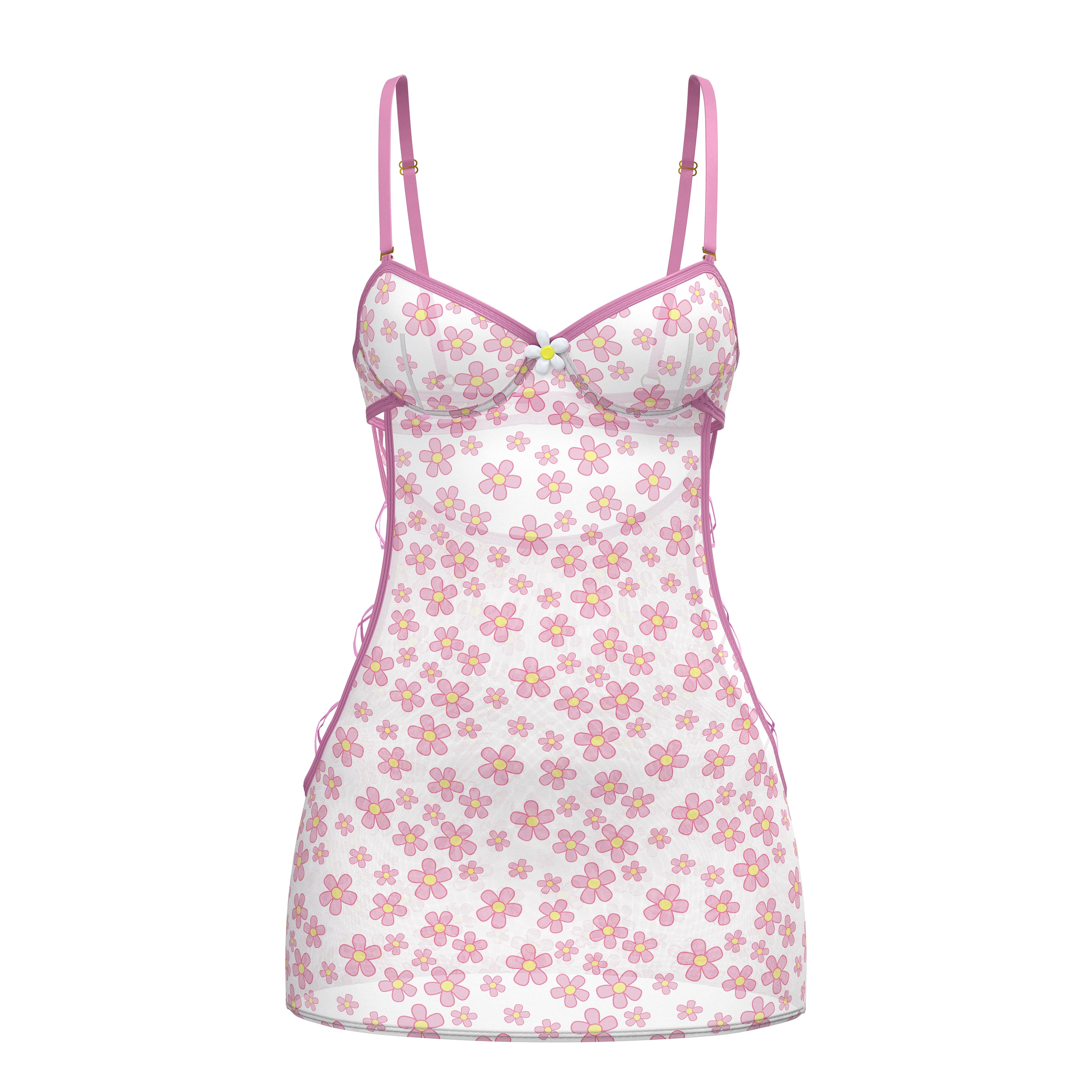 Issue de la collection Exposed by Magic Silk, cette robe en résille sublime arbore un imprimé marguerites rétro réactif à la lumière noire, rehaussé de charmantes perles. Elle est dotée de bretelles réglables avec curseurs lilas, d'un élastique à boucle lilas vif et d'une fermeture à crochets sécurisée dans le dos. Elle est également livrée avec un tanga assorti. La résille extensible à imprimé marguerites rétro est réactive à la lumière noire, vous assurant une nuit lumineuse. Sublimez votre garde-robe avec cet ensemble de lingerie féminine séduisant, composé d'une robe et d'un tanga, parfait pour les grandes occasions. Achetez dès maintenant et ajoutez cette pièce unique à votre collection.