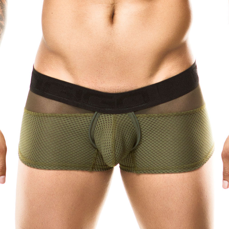 Le boxer Gigo COMBO GREEN présente une couleur verte éclatante avec une ceinture noire contrastante, ajoutant une touche d'audace à votre collection de sous-vêtements. La conception en maille est non seulement élégante, mais améliore également la respirabilité, vous permettant de rester à l'aise tout au long de la journée.