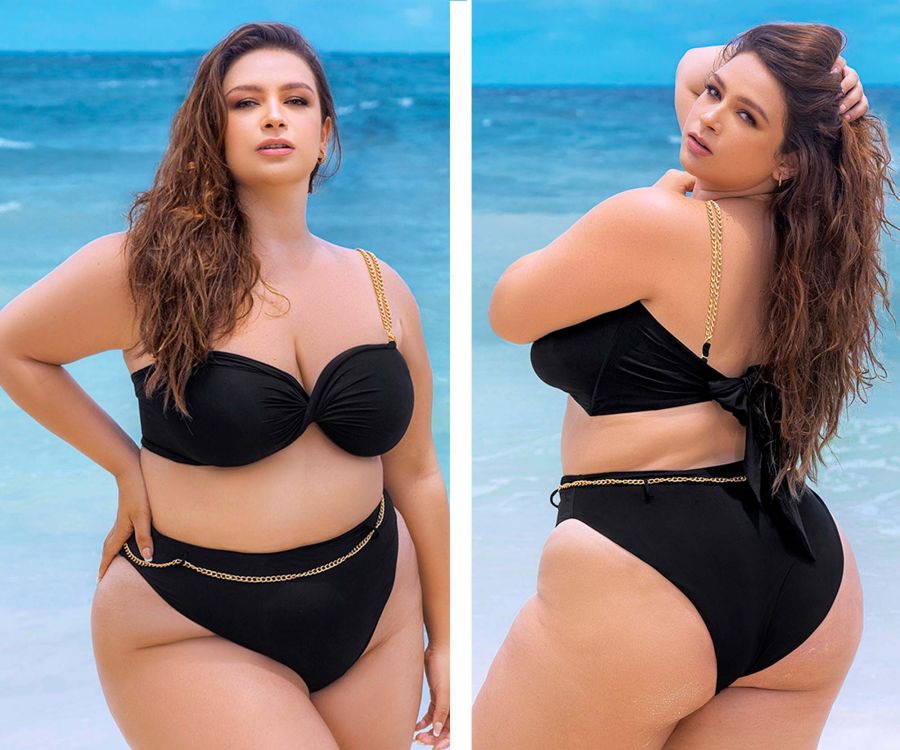 Entrez dans l'été avec confiance et style grâce au maillot de bain deux pièces Mapale 67002X en noir classique. Ce superbe maillot de bain est doté d'un haut à détails torsadés avec des bretelles en chaîne amovibles, offrant polyvalence et une touche d'élégance. Le bas taille haute assorti offre une couverture moyenne et comprend un accessoire de ceinture en chaîne amovible, ajoutant une touche chic et tendance à votre tenue de plage.
