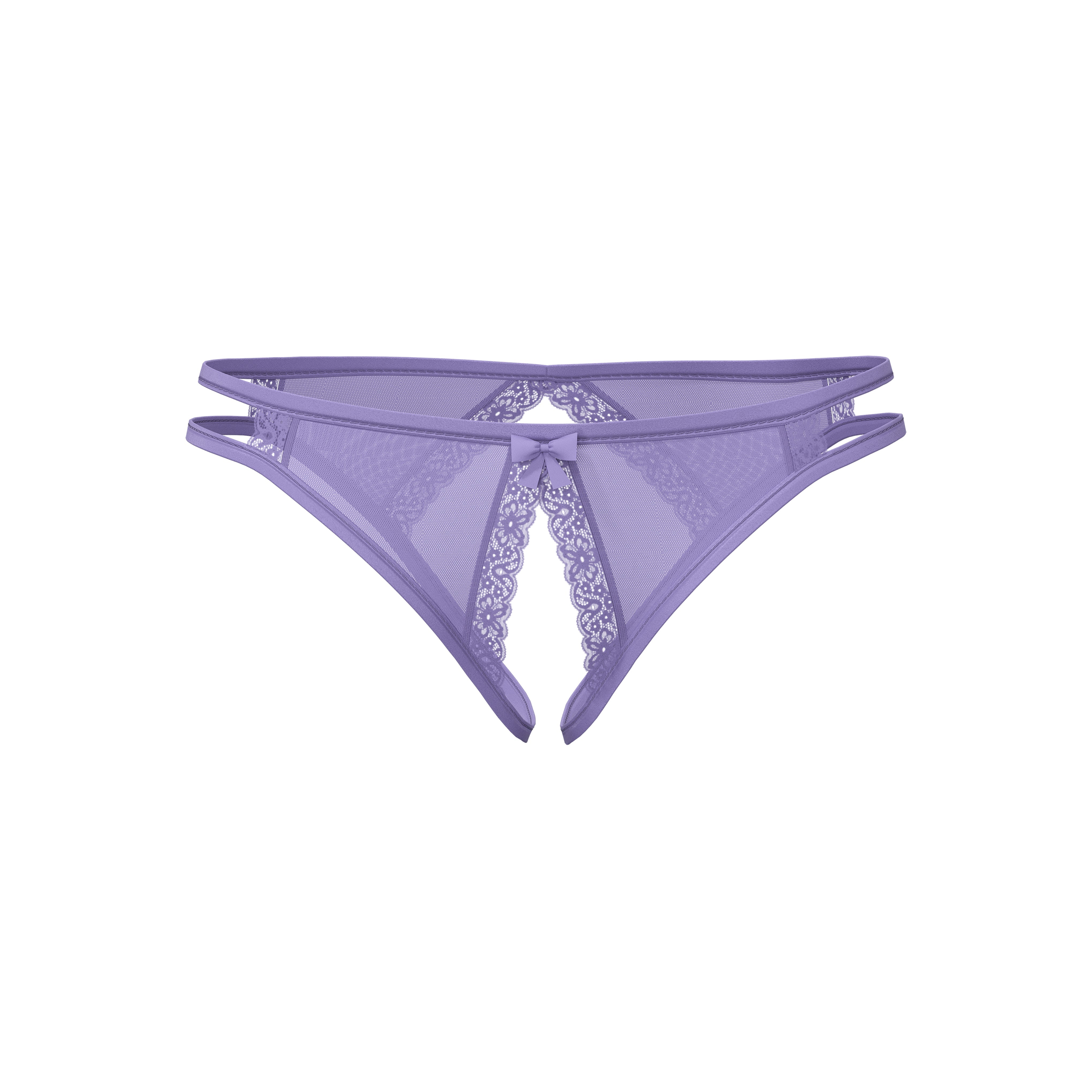 This design from the Exposed by Magic Silk collection includes a satin bow tie and a crotchless low-rise mesh panty with delicate lace trimming. The combination of sheer stretch mesh fabric, velvety satin bindings, and scalloped lace trim creates a sophisticated and alluring look. This Women's lingerie piece is available in two vibrant colors, adding a touch of playful elegance to your collection. Perfect for those seeking both comfort and style, this panty ensures a flattering fit and a confident feel. Enhance your wardrobe with this unique and beautifully crafted panty.