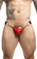 Embrace a blend of audacious allure and unmatched comfort with the Dngeon Ring Mounted Jockstrap. This meticulously crafted piece radiates sophistication with its sumptuous faux leather texture, available in a palette of both classic and contemporary hues. The front is adorned with a full cup, meticulously designed to provide a gentle lift to your manhood, striking the perfect balance between support and visual appeal. The daring design is further enhanced by metal rings gracefully placed at the hips, offering a hint of avant-garde style. A thoughtfully exposed back ensures optimal breathability, keeping you cool and comfortable through any venture. Ethically created in Colombia by a team of dedicated women heads of families and powered by renewable energy, this jockstrap speaks volumes of Dngeon's commitment to sustainable luxury. Designed in Canada, every stitch resonates with quality and innovation, ensuring you not only wear a product but experience a sensation.