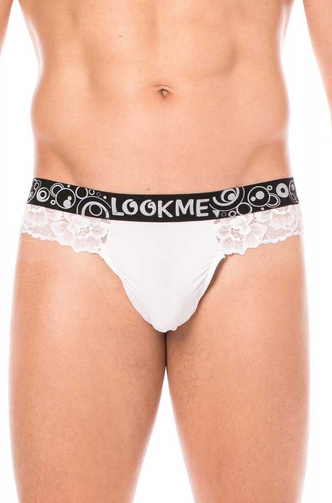 The Lookme Lace Thong features a striking design with a bold waistband that proudly displays the Lookme logo. The intricate lace detailing adds a touch of elegance and sophistication, making this thong a standout piece in your underwear collection.