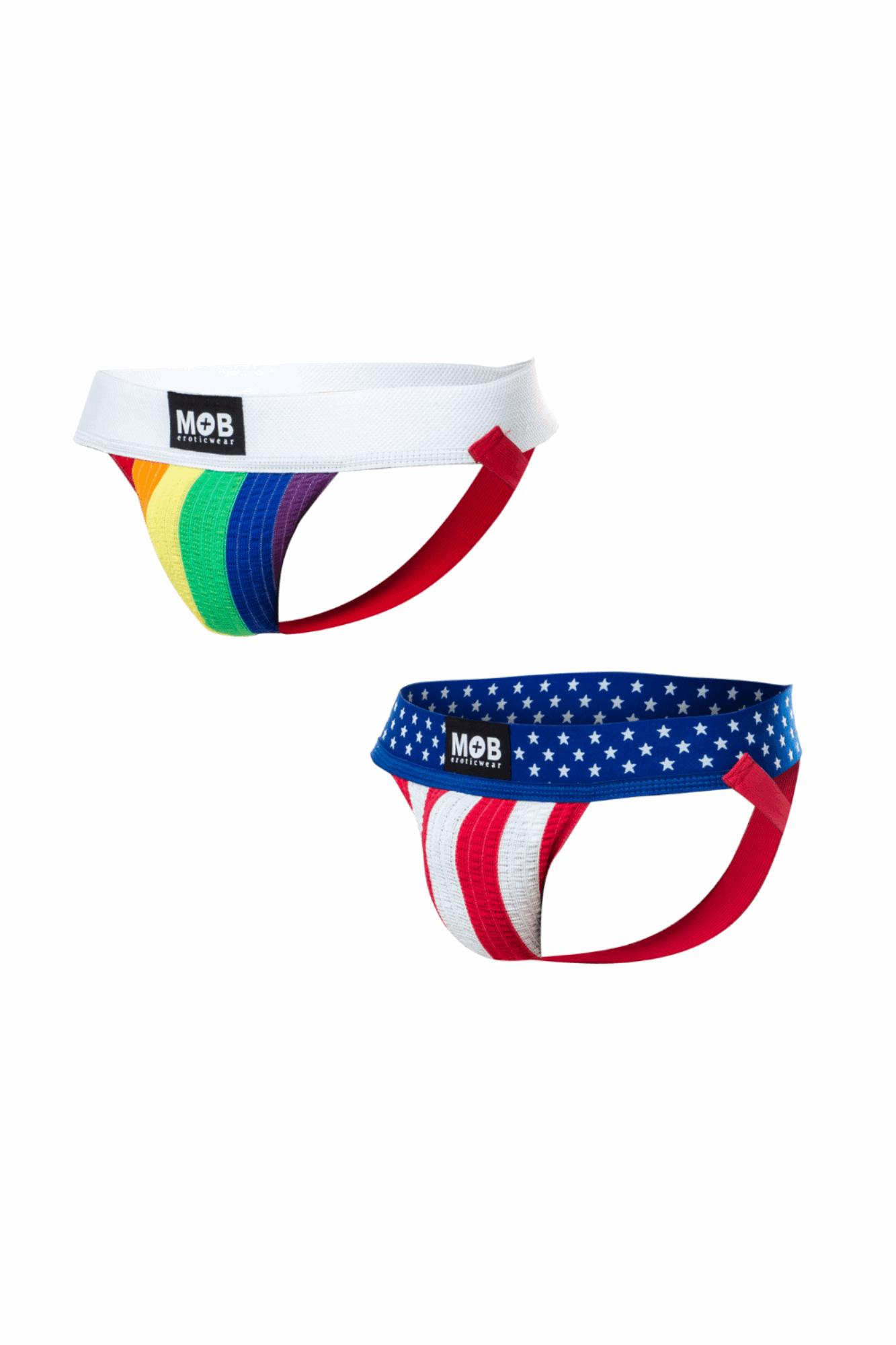 Our Mob Jock jockstraps come in a range of fun, printed designs that add a touch of personality to your underwear collection. Made from soft and stretchy Cotton Lycra material, these jockstraps ensure ultimate comfort throughout the day. The vibrant designs, including patriotic and pride themes, are perfect for expressing your unique style.