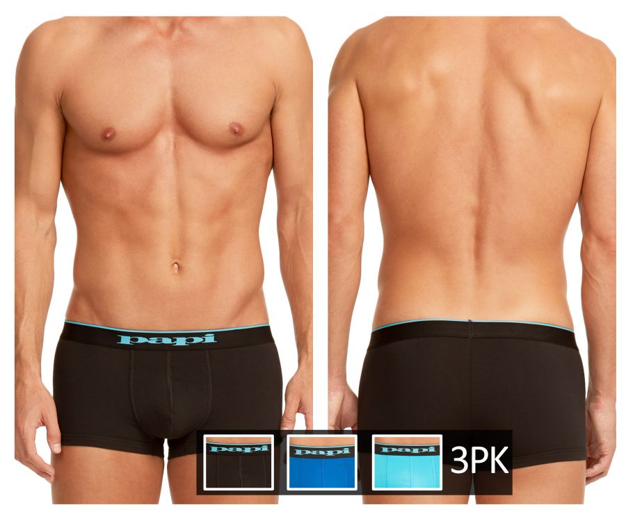 The Papi 980501-941 trunks come in a pack of three, featuring solid colors in black, cobalt, and blue. The subtle design and sleek fit make these trunks a stylish addition to your underwear collection. The waistband is branded with the iconic Papi logo, adding a touch of sophistication to your look.