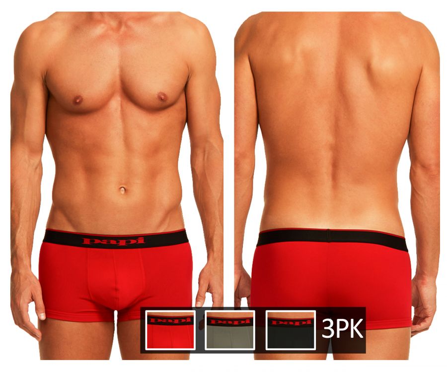 Available in a pack of three, these trunks come in classic colors of red, gray, and black. The subtle design and sleek fit make them perfect for any outfit, whether you're heading to the gym or a night out. The Papi logo on the waistband adds a touch of sophistication, making these trunks not just underwear, but a statement piece.