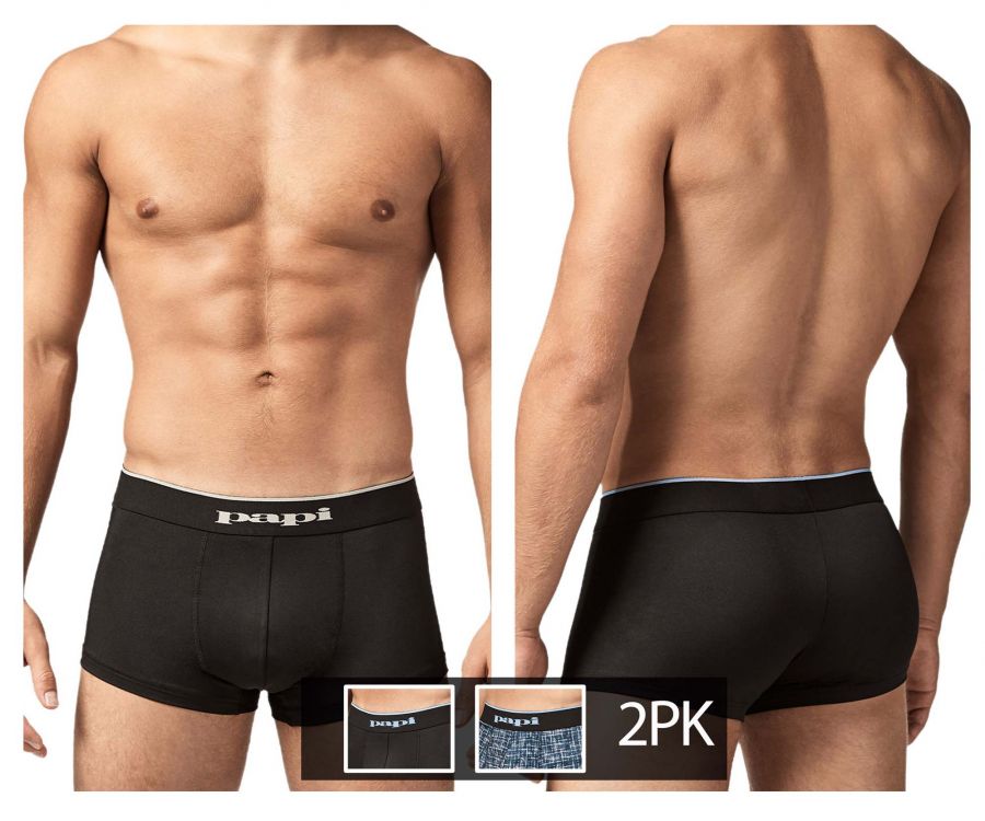 The images showcase the sleek design and perfect fit of the Papi UMPA048 2PK Microflex Brazilian Trunks. The blue-texture color adds a touch of sophistication, making these trunks a stylish addition to your underwear collection. The waistband features the iconic Papi logo, adding a touch of brand recognition and style.