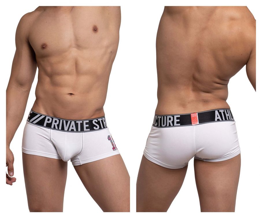 As shown in the images, the trunks feature a bold waistband with the "Private Structure" branding, adding a touch of style to your underwear drawer. The white color is versatile and timeless, making it easy to pair with any outfit.