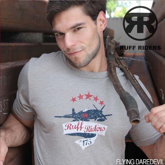 The front of the shirt features a striking graphic of a vintage airplane with the Ruff Riders logo and red stars, embodying a daring and adventurous spirit. This design is perfect for those who love to stand out and make a statement.