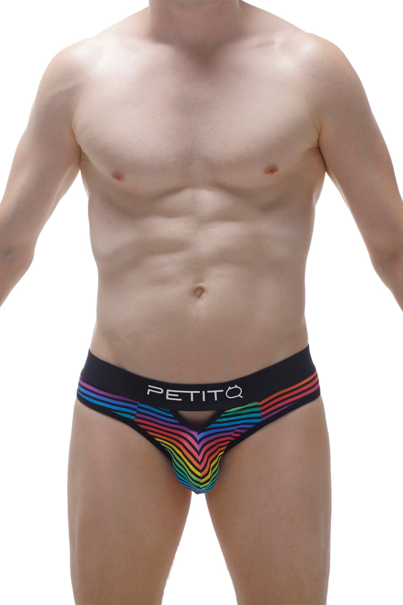 Cute thong with colorful lines in soft modal. Little cutouts in the front and in the back to show just a bit of your butt.